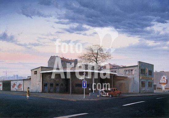 akg580803 Koeppel, Matthias ; né en 1937. "Vieille station-service", 1984. Huile sur toile, 70 × 100 cm. Collection particulière. Museum: PRIVATE COLLECTION. Copyright: © Matthias Koeppel. This artwork is not in the public domain. It is your responsibility to obtain all necessary third party permissions from the copyright handler in your country prior to publication.