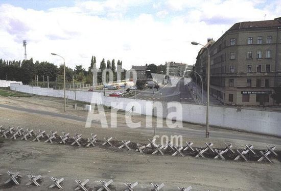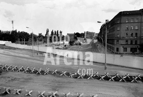 akg396960 Berlin, Berlin Wall - Sector border, Bernauer Straße (Wedding district / Mitte district and Prenzlauer Berg). View from Bernauer Straße of the border construction on Eberswalder Straße (Prenzlauer Berg district). Photo, September 1983.