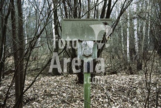 akg397020 Berlin, Germany. Berlin Wall - Sector Borders. Concrete warning sign written in English at the border between the British and Soviet sectors (Warning, beyond this point is the Russian sector). Photo, October 1981.