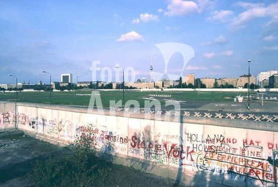 akg397256 Berlin, Germany. Berlin Wall - Sector border. View across the Wall at Potsdamer Platz; Leipziger Platz on the right with Leipziger Straße; buildings along Wilhelmstraße in the background. Photo, June 1981.