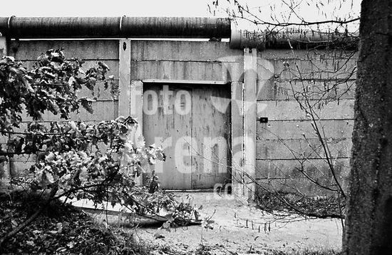 akg1570442 Berlin, Germany. Berlin Wall (built 1961, demolished, demolished November 1989). British sector pedestrian crossing: View of the door in the wall on the West Berlin side. West Berliners had to register via intercom (right) at the border post. (Crossing for West Berliners to reach their alottments in "Fichtewiese" and "Erlengrund", a West German enclave in East Berlin. They were freely accessible again from 1st July 1988 through an exchange of territory with the GDR). Photo October 1983.