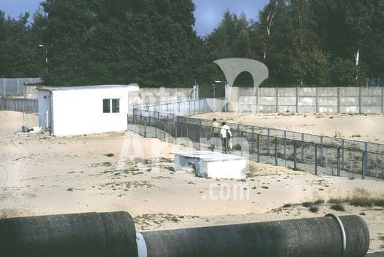 akg396953 Berlin, Germany. Berlin Wall - Sector Borders. British sector pedestrian border crossing for privileged GDR citizens near to the River Havel. Photo, October 1983.