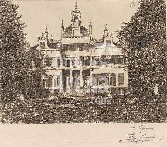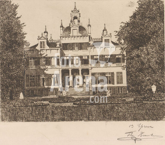 alb15587181 Hof ter Mick in Brasschaat, print, print maker: Florent Brant, (signed by artist), 1873 - c. 1909, paper, etching, height, 220 mm × width, 330 mm.