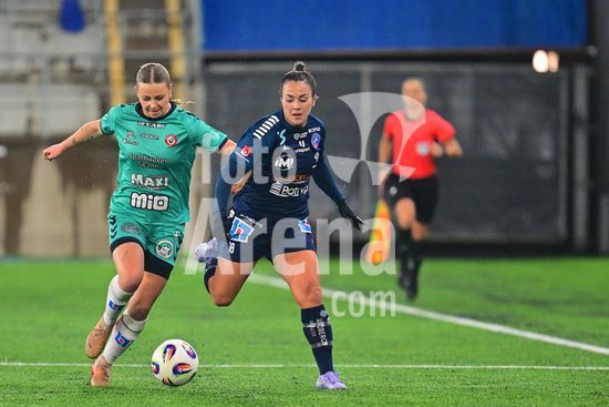 2840934 Mathilde Janzen (3 Kristianstad) e Noor Eckhoff (6 Linkoping FC) durante o jogo na Liga Sueca OBOS Damallsvenskan em 10 de novembro de 2025 entre Linkoping FC e Kristianstads DFF na Bilborsen Arena em Linkoping, Suecia (Peter Sonander/SPP)