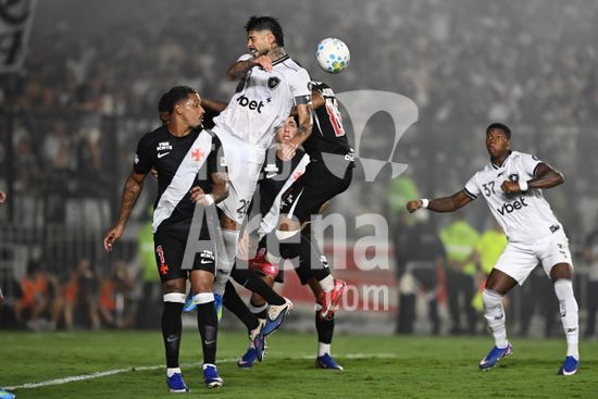2918693 O jogador Alexander Barboza do Botafogo disputa lance aéreo durante a partida entre Vasco e Botafogo, válida pela 10ª rodada do Campeonato Brasileiro Série A, no estádio de São Januário - 4 de abril de 2026, no Rio de Janeiro