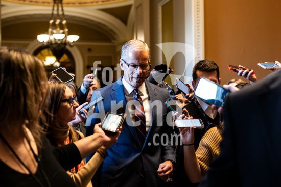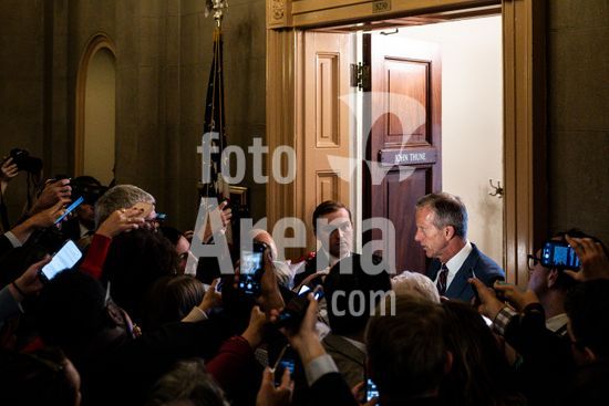 ny101125153211 Senate Majority Leader John Thune (R-S.D.) speaks to reporters at his office door on Capitol Hill in Washington on Monday, Nov. 10, 2025. The end to the longest U.S. government shutdown ever was in sight on Monday, the day after eight senators who caucus with Democrats broke ranks and provided the votes to advance a plan to fund most federal agencies through January. (Tierney L. Cross/The New York Times/Fotoarena)