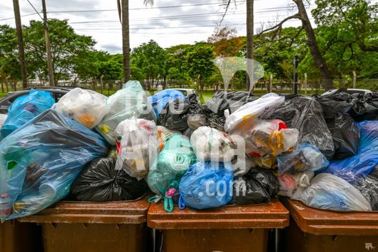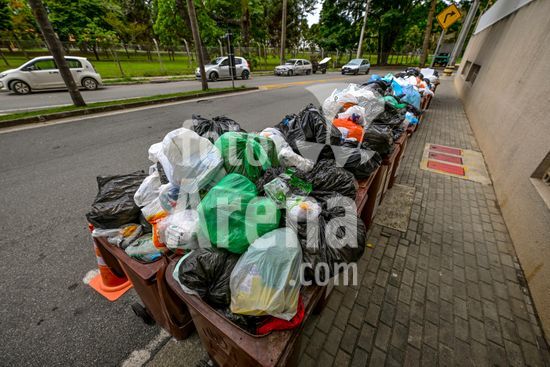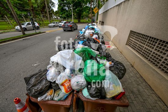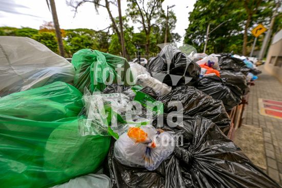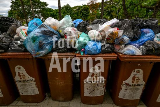 2840820 Cerca de 50 lixeiras cheias no condominio Esplendor Garden na zona oeste da cidade , pela quantidade é considerado um grande gerador são diversas tores , lixo comum que deve ser totalmente destinado ao aterro sanitario a prefeitura da cidade não tem nenhum programa de compostagem aplicado na cidade apesar da lei federal de 2010 onde os municipios ja deveriam estar compostando desde 2015 . Atualmente cerca de 700 toneladas dias vai para o aterro sanitario da cidade . Menos de 5% são reciclados .