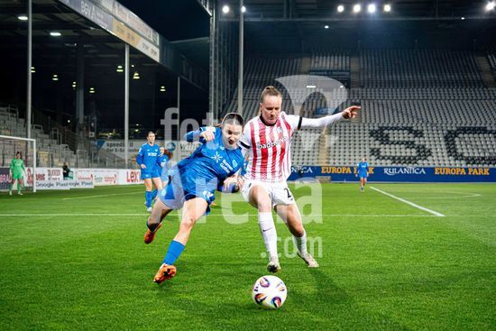 2840954 Valentina Madl (17 Bayer Leverkusen), a direita, e Greta Stegemann (16 SC Freiburg), a esquerda, em acao durante a partida entre SC Freiburg e Bayer 04 Leverkusen em Dreisamstadion, Freiburg, Alemanha. (Priscila Bütler / SPP)