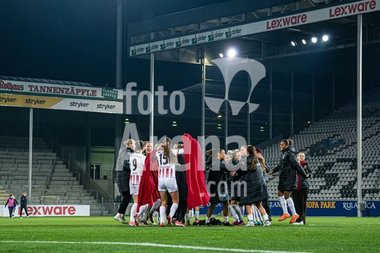 2840926 Tessa Blumenberg (7 SC Freiburg) comemorando com a equipe apos marcar o segundo gol do time durante a partida entre SC Freiburg e Bayer 04 Leverkusen no Dreisamstadion, em Freiburg, Alemanha. (Priscila Bütler / SPP)