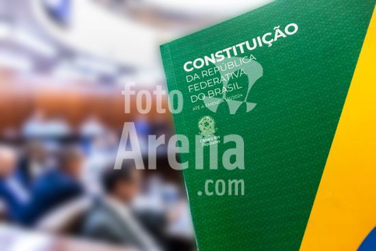 2881660 Capa da Constituição da República Federativa do Brasil, exibida em destaque com o plenário da Câmara dos Veredores da Cidade de Marília, ao fundo. A imagem simboliza a base da democracia e do ordenamento jurídico do país, representando os direitos e deveres fundamentais dos cidadãos e a estrutura dos Três Poderes.