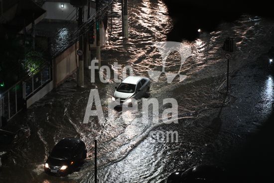 2881513 Carros passam por bolsões de água na Rua São Francisco Xavier com avenida Manoel de Abreu próximo ao Campus da UERJ durante Chuva no Rio de Janeiro realizada no Bairro Maracanã na noite desta segunda feira (9), no Rio de Janeiro, RJ.