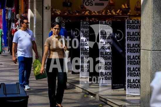 2849681 Com oferta de promoções em diversos setores, a Black Friday acontece nesta sexta-feira (28), onde consumidores podem adquirir produtos com descontos de até 80% de desconto. Especialistas recomendam atenção aos preços e comparação antes da compra. Na foto, o conhecido calçadão de Osasco na Grande São Paulo, o principal centro comercial da cidade, tem movimento fraco.