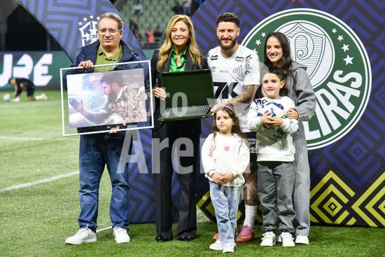 2837111 O jogadore Zé Rafael do Santos é homenageado durante partida entre Palmeiras x Santos, válida pela trigésima segunda rodada do Campeonato Brasileiro de Futebol 2025, nesta quinta feira (6), no Allianz Parque, SP.