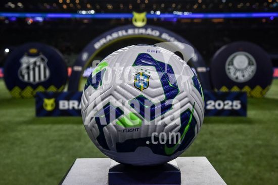 2837113 Bola da partida entre Palmeiras x Santos, válida pela trigésima segunda rodada do Campeonato Brasileiro de Futebol 2025, nesta quinta feira (6), no Allianz Parque, SP.