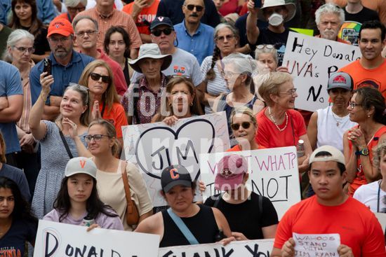 ny270625181310 A demonstrator holds a sign with ?Jim? in a heart during a demonstration in support of University of Virginia President James Ryan on the university?s campus in Charlottesville, Va., on Friday, June 27, 2025. Ryan told the board overseeing the school that he will resign in the face of demands from the Trump administration that he step aside to help resolve a Justice Department inquiry into the school?s diversity, equity and inclusion efforts, according to three people briefed on the matter. (Kirsten Luce/The New York Times/Fotoarena)