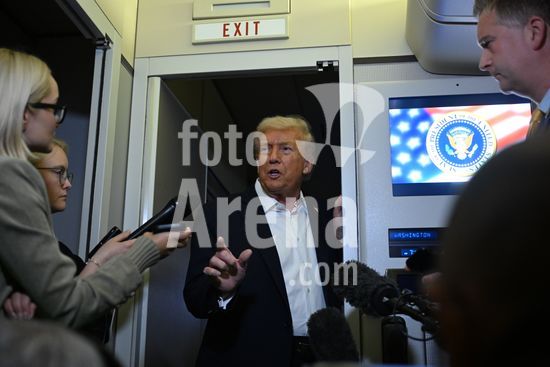 ny181025142912 President Donald Trump speaks with reporters aboard Air Force One, just after midnight on Tuesday, Oct. 14, 2025. In New Jersey, Virginia and beyond, voters have been inundated with ads linking Republican candidates to the president. Some Democratic strategists see a missed opportunity to forge a more positive message. (Kenny Holston/The New York Times/Fotoarena) ÑEMBARGO: NO ELECTRONIC DISTRIBUTION, WEB POSTING OR STREET SALES BEFORE 5:01 A.M. ET ON SUNDAY, OCT. 19, 2025. NO EXCEPTIONS FOR ANY REASONS. Ñ