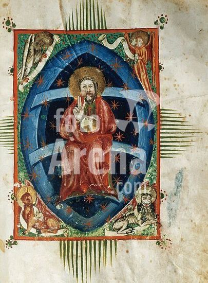 alb1463398 Codex 135. Missale Dominicale cum Kalendario. 14th century. Christ Pantocrator. Miniature. Chapter Archive of Tarazona. Spain.