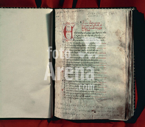 alb1467663 Gonzalo de Berceo (c.1197-before 1264). Spanish poet. Life of Saint Dominic of Silos. Manuscript. First folio. Library of the Royal Academy of History. Madrid. Spain.