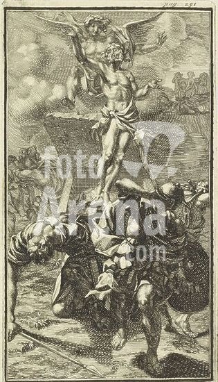 alb15563797 Noord-Nederland, Wandelaar, Jan, Resurrection of Christ, verso lower left - stamped, The risen Christ stands on the edge of the opened tomb. An angel can be seen behind him. Some frightened soldiers are fleeing. Top right: page: 291., print, book illustration, prints, height 147 mm, width 81 mm, Noord-Nederlands, 1690-04-14 - 1759-03-26, print maker, printmaker, 1725 - 1725, paper, etching, etchings, engraving, engraving (printing process), Work conception, after own design by.