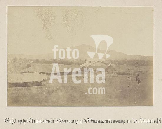 alb15599246 View of the station site at Samarang on the Venarang and the home of the station master (title on object), View of the station site at Semarang, with some open buildings covered with atap and the home of the station master. Album page with pasted photo, part of the photo album about the construction of the Semarang - Kedoeng Djattie (Kedungjati) railway line on Java in 1865., photograph, Carl Emanuel Friedrich Lang, Java, Jan-1865 - Mar-1865, photographic support, albumen print, height, 190 mm × width, 280 mm, height, 305 mm × width, 450 mm.
