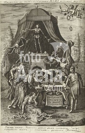 alb15768822 The opened tomb of Venus, ca. 1707-1708, Death pageantry of Venus, Des Waerelds Schoonheid (title on object), The Steadfast Monarchy of Death, 't Pleasure Garden of Momus (series title), Allegory in which bystanders place the skeleton in the View the opened tomb of the goddess Venus, ca. 1707-1708. Numbered: 3 and marked: Pag. 9. Part of: The Steadfast Monarchy of Death, a series of 8 old plates with verses adapted for use as cartoons on the French in the context of the War of the Spanish Succession. Part of the print work published under the collective title 't Lust-Hof van Momus with the bundled series of cartoons during the years 1701-1713 of the War of the Spanish Succession., print, print maker: Carel Allard, (possibly), Abraham Allard, (mentioned on object), publisher: Carel Allard, (mentioned on object), Amsterdam, 1707 - 1708, paper, etching, height, 315 mm × width, 200 mm.