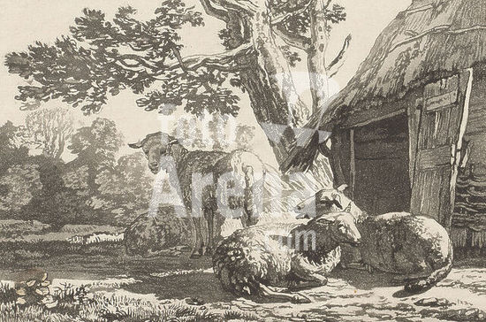 alb3703557 Sheepcote. Dated: 1781. Medium: transfer technique (aquatint?). Museum: National Gallery of Art, Washington DC. Author: Cornelis Ploos van Amstel and Cornelis Brouwer after Karel Dujardin.