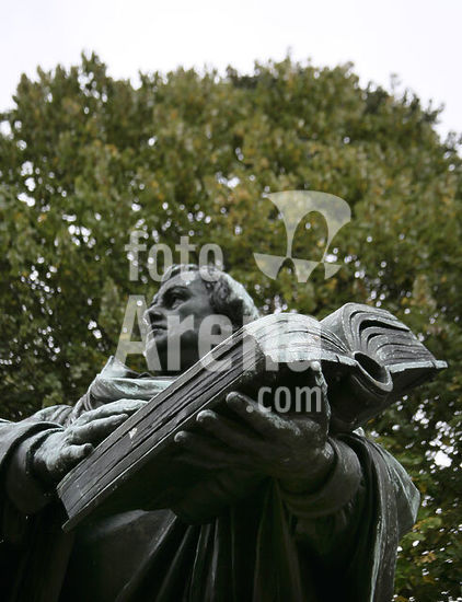 alb18694748 Martin Luther (1483-1546). German theologian and Augustinian friar. Statue of Martin Luther next to the Marienkirche (St. Mary's Church) in Berlin, Germany. It was created by Paul Martin Otto (1846-1893) and Robert Toberentz (1849-1895) in 1895. Luther is depicted holding an open Bible, touching one of its pages. It was originally the central figure of a large monument which was destroyed in 1945. Bronze. Detail. Author: Paul Martin Otto (1846-1893). German sculptor. Robert Toberentz (1849-1895). German sculptor.