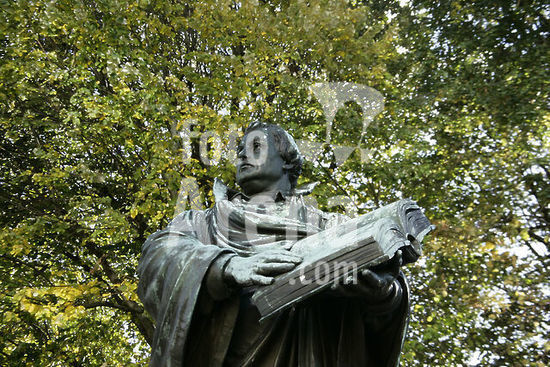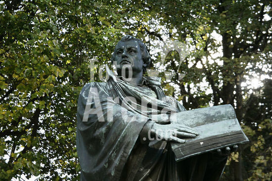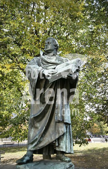alb18694732 Martin Luther (1483-1546). German theologian and Augustinian friar. Statue of Martin Luther next to the Marienkirche (St. Mary's Church) in Berlin, Germany. It was created by Paul Martin Otto (1846-1893) and Robert Toberentz (1849-1895) in 1895. Luther is depicted holding an open Bible, touching one of its pages. It was originally the central figure of a large monument which was destroyed in 1945. Bronze. Author: Paul Martin Otto (1846-1893). German sculptor. Robert Toberentz (1849-1895). German sculptor.