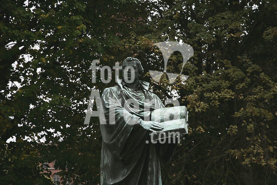 alb18694734 Martin Luther (1483-1546). German theologian and Augustinian friar. Statue of Martin Luther next to the Marienkirche (St. Mary's Church) in Berlin, Germany. It was created by Paul Martin Otto (1846-1893) and Robert Toberentz (1849-1895) in 1895. Luther is depicted holding an open Bible, touching one of its pages. It was originally the central figure of a large monument which was destroyed in 1945. Bronze. Detail. Author: Paul Martin Otto (1846-1893). German sculptor. Robert Toberentz (1849-1895). German sculptor.