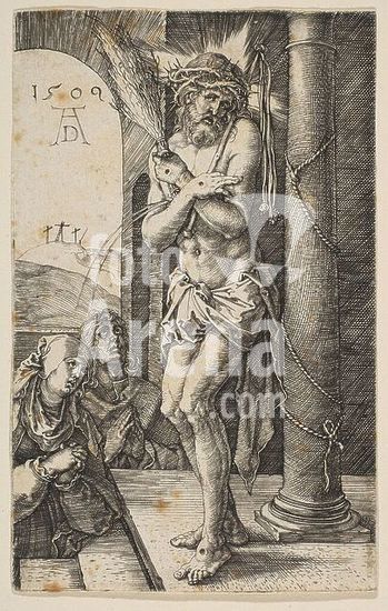 alb3672897 Man of Sorrows, from The Passion. Artist: Albrecht Dürer (German, Nuremberg 1471-1528 Nuremberg). Dimensions: Sheet: 4 11/16 × 2 15/16 in. (11.9 × 7.4 cm). Date: 1509. Museum: Metropolitan Museum of Art, New York, USA.