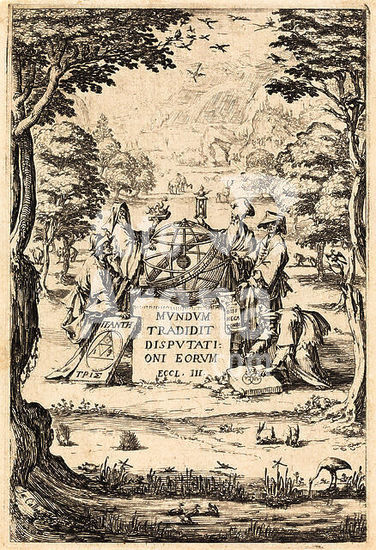 alb3708381 Frontispiece for the Sacred Cosmologia (Title with Astrologers). Medium: etching. Museum: National Gallery of Art, Washington DC. Author: after Jacques Callot.