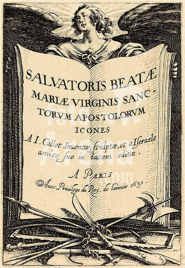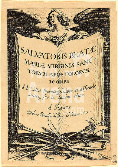 alb3735240 Frontispiece for "The Large Apostles". Dated: published 1631. Medium: etching. Museum: National Gallery of Art, Washington DC. Author: JACQUES CALLOT.