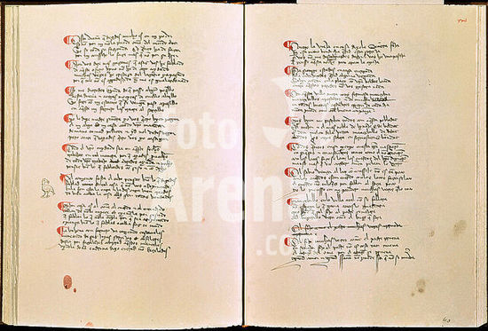 orz133819 LIBRO DEL BUEN AMOR -MANUSCRITO SIGLO XIV - PAGINAS DEL INTERIOR - COPISTA ALFONSO DE PARADINAS REALIZADO EN EL SIGLO XV. Author: JUAN RUIZ-EL ARCIPRESTE DE HITA (1283-1350). Location: UNIVERSIDAD BIBLIOTECA. SALAMANCA. SPAIN.