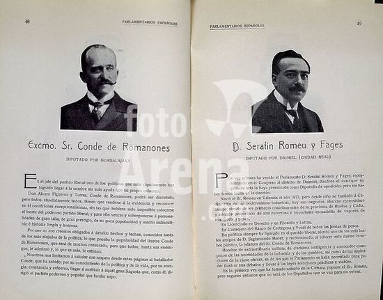 orz153138 PARLAMENTARIOS ESPAÑOLES - RETRATOS: CONDE DE ROMANONES Y SERAFIN ROMEU Y FARGES - PAGINAS 48 Y 49. Location: CONGRESO DE LOS DIPUTADOS-BIBLIOTECA. MADRID. SPAIN.
