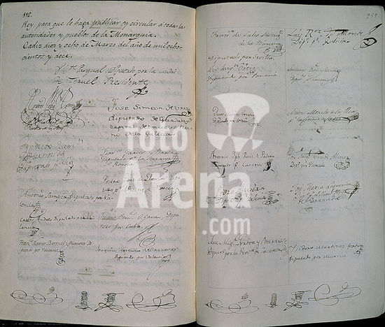 orz153410 CONSTITUCION POLITICA DE LA MONARQUIA ESPAÑOLA 1812-DOBLE PAGINA CON FIRMAS. Location: CONGRESO DE LOS DIPUTADOS-BIBLIOTECA. MADRID. SPAIN.