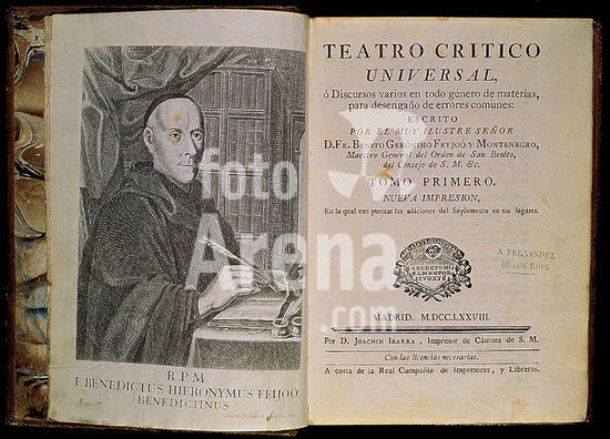 orz153526 TEATRO CRITICO UNIVERSAL-TOMO I-MADRID 1778-NUEVA IMPRESION-DOBLE PAGINA CON GRABADO DE FRAY B.FEIJO. Author: FRAY BENITO FEIJOO (1676-1764). Location: CONGRESO DE LOS DIPUTADOS-BIBLIOTECA. MADRID. SPAIN. PADRE FEIJOO Y MONTENEGRO (1676-1764).