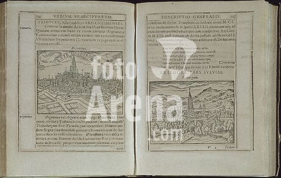 orz153528 URBIUM PRAECIPUARUM THEATRUM QUINTUM - GRABADOS DE ESTRASBURGO Y DE FRIBURGO - 1580 - PAGINAS 154 Y 155. Author: GEORG BRAUN. Location: CONGRESO DE LOS DIPUTADOS-BIBLIOTECA. MADRID. SPAIN.