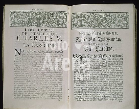 orz153550 CODICE CRIMINAL DEL EMPERADOR CARLOS V, VULGARMENTE LLAMADO"LA CAROLINA" - DOBLE PAGINA EN FRANCES Y ALEMAN - SIGLO XVI. Location: CONGRESO DE LOS DIPUTADOS-BIBLIOTECA. MADRID. SPAIN.