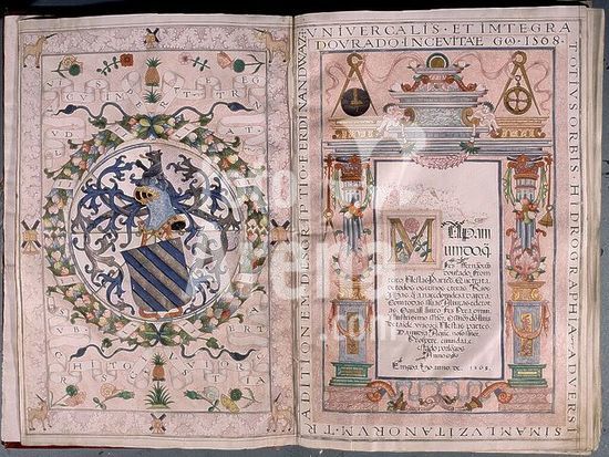 orz164869 FACSIMIL - PORTADA Y ANTEPORTADA DEL ATLAS PORTULANO - 1568. Author: FERNAO VAZ DOURADO (1520-1580). Location: PRIVATE COLLECTION. MADRID. SPAIN.