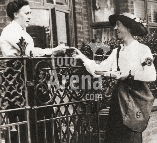 902_05_12285927HighRes Postwomen delivering letters during World War One, thereby leaving the men free to fight. From The Pageant of the Century, published 1934