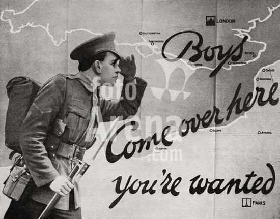 902_05_12320880HighRes Wartime Recruitment Poster. From the magazine Twenty Years After The Battlefields of 1914-1918 Then and Now by Sir Ernest Swinton published 1938.