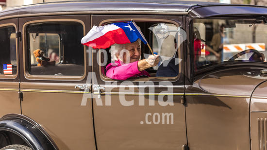 929_02_voahd-78-63 Austin, Texas, senior woman flies Texas flag down Congress Avenue for the annual Texas Independence Day parade to the Texas Capitol. An official state holiday, the day celebrates Texas' declaration of independence from Mexico on March 2, 1836.