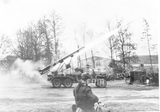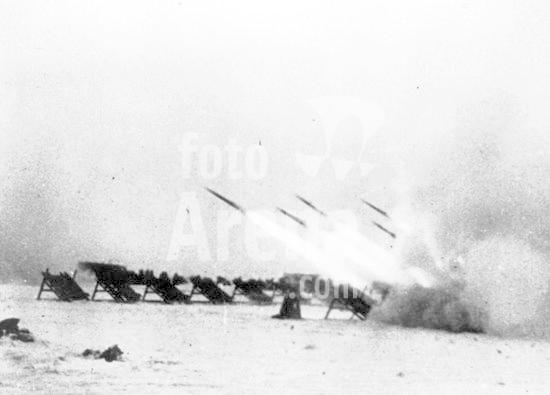 975_05_SOV-B-102 The beginning of the end for the germans at stalingrad was launched by this group of rocket launchers shown in 'victory at stalingrad', the soviet film of the historic battle.