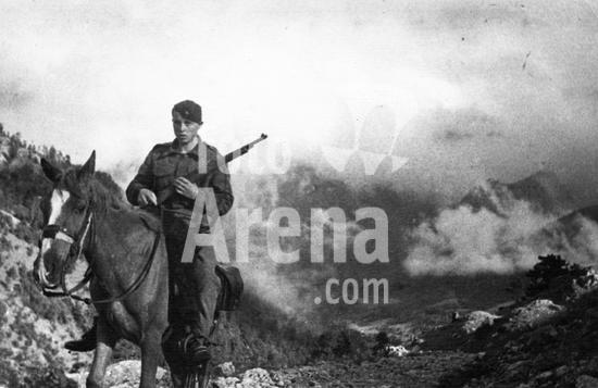 975_05_SOV-B-3832 World war 2, a yugoslavian partisan scout in the mountains of yugoslavia.