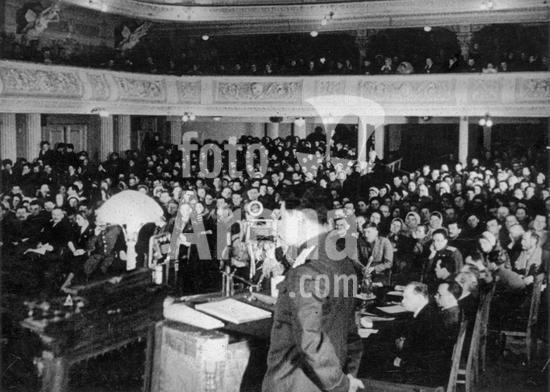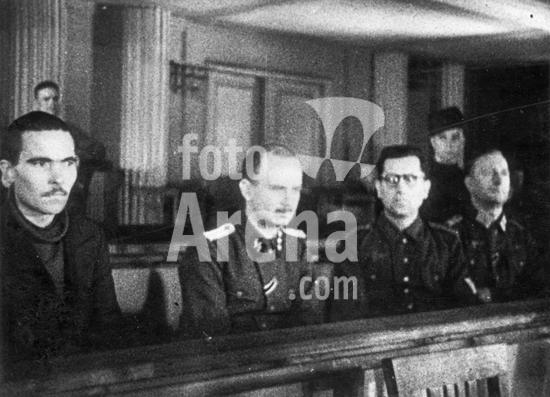 975_05_SOV-B-KH09 World war 2, december 15, 1943, still from a film on the kharkov trial produced by artkino, the military tribunal of the fourth ukrainian front in session at kharkov.