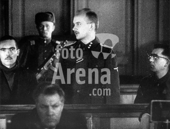 975_05_SOV-B-KH02 World war 2, december 15, 1943, still from a film on the kharkov trial produced by artkino, unterzturnfurher, ss hans ritz, deputy commander of the ss company of the 'sonderkommando sd' in the docket at the kharkov trial.
