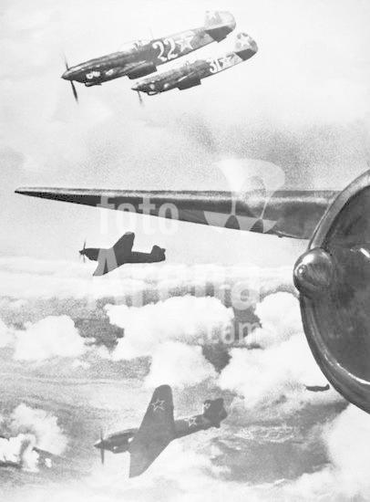975_05_SOV-B-8927 Soviet ilyushin 2 stormovik fighter planes headed for the western front during world war 2.
