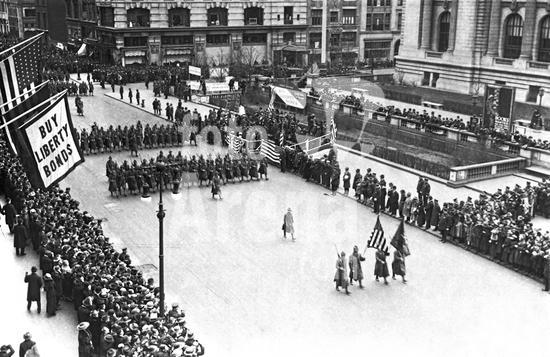 990_05_4-WWI-US-LibertyB_3HR New York, New York: c. 1917 One of the Liberty Bond drives in New York City during World War I.
