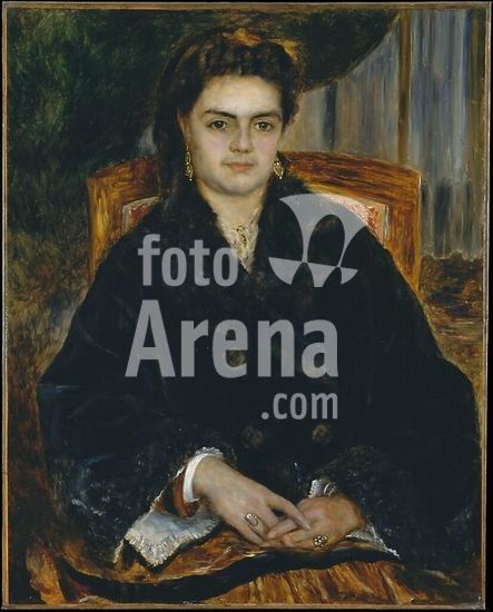 alb3606812 Madame Édouard Bernier (Marie-Octavie-Stéphanie Laurens, 1838-1920). Artist: Auguste Renoir (French, Limoges 1841-1919 Cagnes-sur-Mer). Dimensions: 30 3/4 x 24 1/2 in. (78.1 x 62.2 cm). Date: 1871.Marie-Octavie Bernier was the wife of the commander of Renoir's regiment during the Franco-Prussian War (1870-71). In the spring of 1871, Renoir stayed with the couple, who were living with her father in the town of Tarbes in southwestern France. Enjoying their hospitality and a level of comfort that is reflected in this portrait, Renoir fondly recalled that he spent "two months in a château," where he was "treated like a prince," rode horses every day, and taught his hosts' daughter to paint. Museum: Metropolitan Museum of Art, New York, USA. Author: AUGUSTE RENOIR.