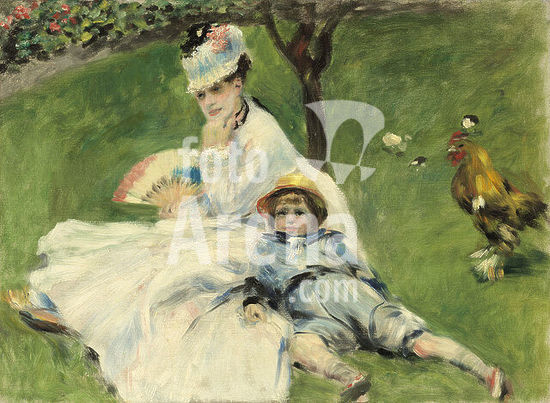 alb3708578 Madame Monet and Her Son. Dated: 1874. Dimensions: overall: 50.4 x 68 cm (19 13/16 x 26 3/4 in.) framed: 77.4 x 95.5 x 11.4 cm (30 1/2 x 37 5/8 x 4 1/2 in.). Medium: oil on canvas. Museum: National Gallery of Art, Washington DC. Author: AUGUSTE RENOIR.